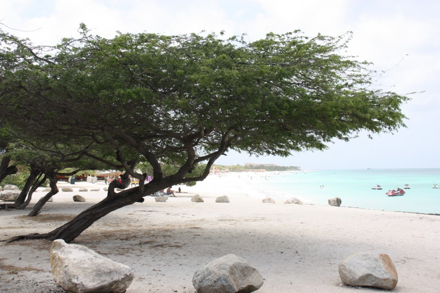 Einer der Besten, wenn nicht sogar der beste Strand ist der Eagle Beach an der Nordwestküste Arubas nördlich der Inselhauptstadt Oranjestaad. Der kilometerlange und rund 150 breite Strand ist  von den typischen schattenspendenden Divi-Divi-Bäumen gesäumt. Ansonsten gibt es hier den weißesten und weichsten Sand und richtig türkisblaues Wasser.