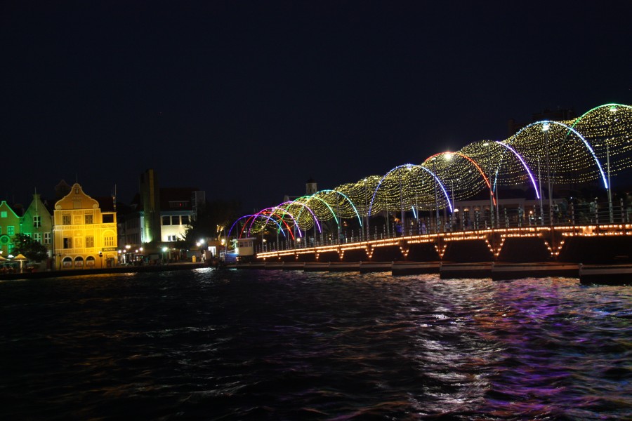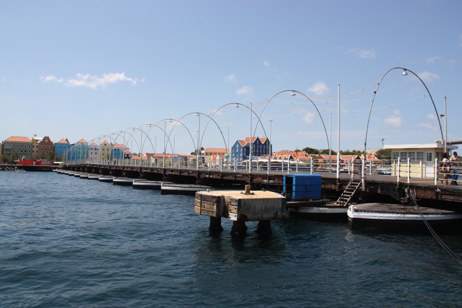 Die Pontonbrücke verbindet die Sint Anna Baai, den natürlichen Hafen von Willemstad mit dem offenen Meer.Selbst größte Kreuzfahrtschiffe fahren in den Hafen ein und so wurde anstatt einer normalen Brücke eine fahrbare Pontonbrücke gebaut.