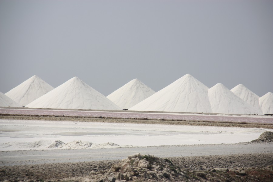 Im Süden der Insel Bonaire kommt man bei der Fahrt um den südlichen Teil der Insel zwangsläufig an den Salzbergen vorbei. Auf eigene Faust mit Auto oder Roller kann man so ganz einfach zu den Salzbergen fahren und die großen weißen Berge bereits aus der Ferne betrachten.