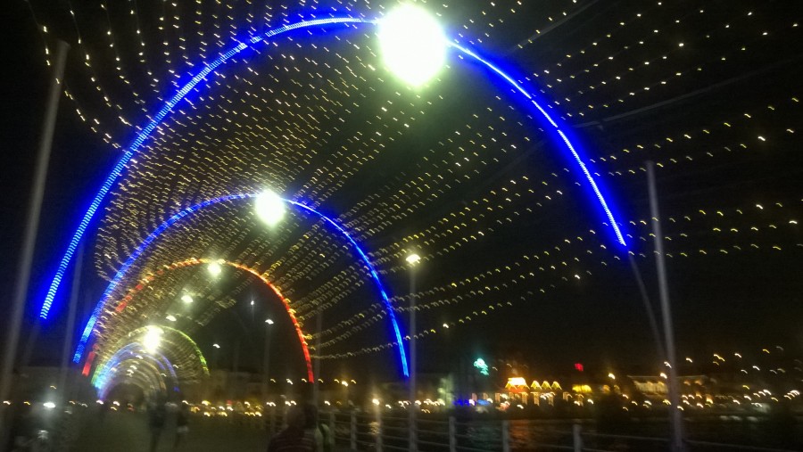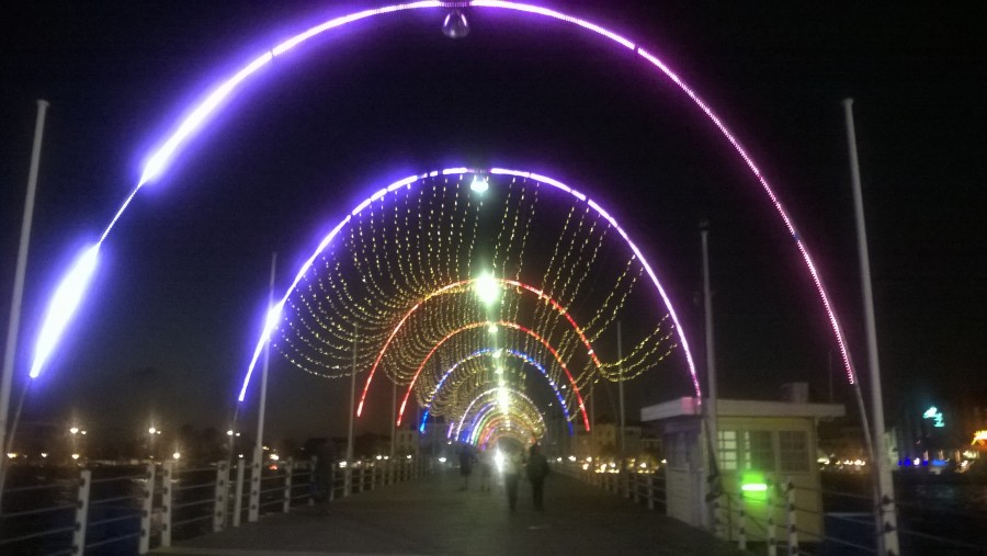Pontonbrücke verbindet Hafen mit Meer