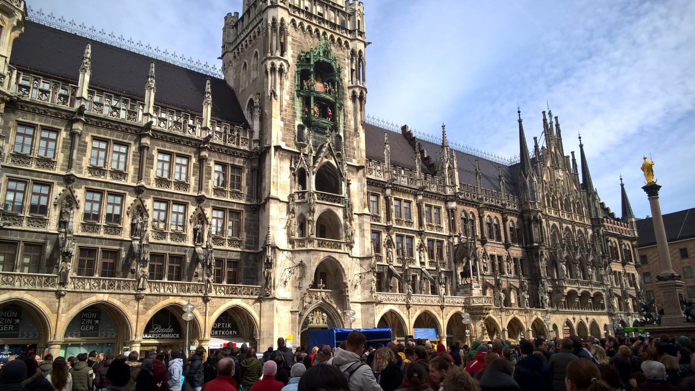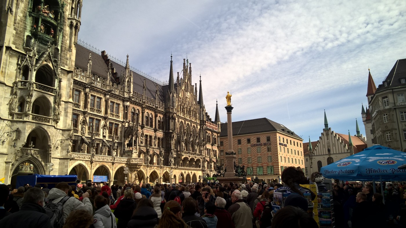 Glockenspiel vor dem Marienplatz München 2015 Published 14. April 2016 at 1400 × 788 in Besichtigung des Glockenspiels auf dem Marienplatz in München ← Previous Next → Glockenspiel vor dem Marienplatz München 2015