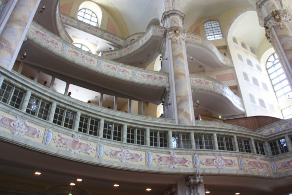 Einen guten Ausblick über Dresden kann man von der Aussichtsplattform der Dresdner Frauenkirche genießen. Im Inneren ist es möglich den 95 m hohen Zentralbau zu besteigen. Zunächst führt der Lift in eine Höhe von 24 m und anschließend geht man den Rest über eine Wendeltreppe. Hier ist allerdings zu erwähnen, dass der Aufstieg älteren Menschen nicht zu empfehlen ist.