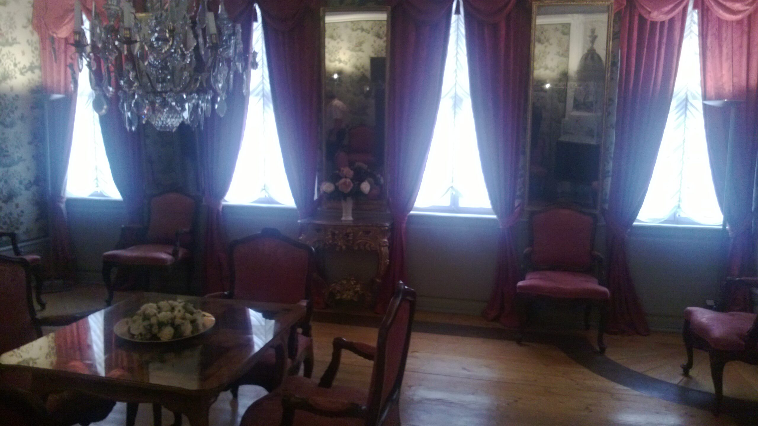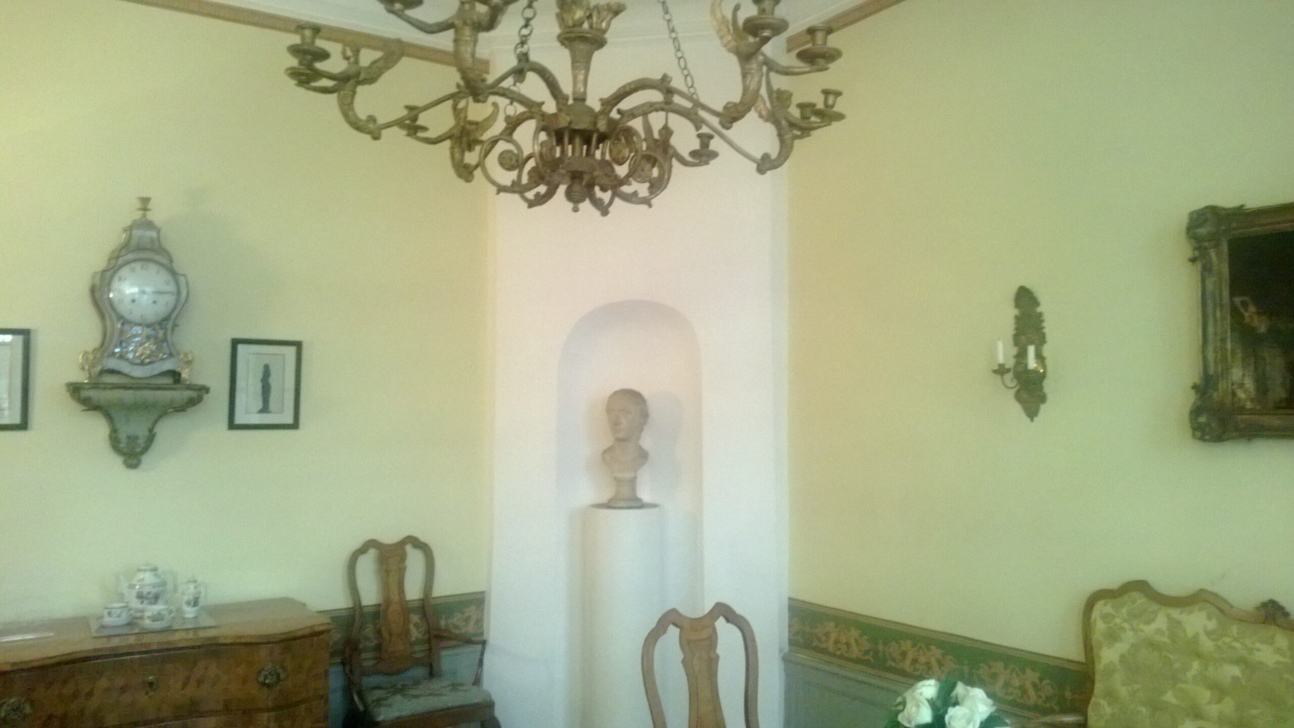 Das blau eingerichtete Zimmer im Erdgeschoß wurde als Speisezummer genutzt und ein weiteres gelb eingerichtetes Zimmer als Empfangszimmer. Ansonsten beeindruckt die Verzierung des Eingangsbereiches sowie der imposante Treppenaufgang.