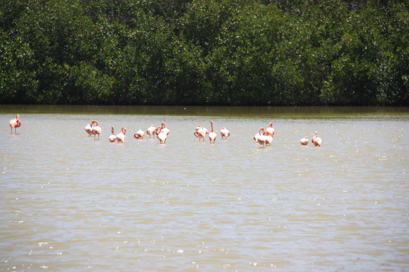 Hin und wieder machen die Flamingos auch Tagesausflüge zu den benachbarten ABC-Inseln. Es kann daher durchaus passieren, dass man z.B. auch auf Curracao ein paar Flamingos begegnet. Damit handelt es sich dann um Flamingos, die auf der Suche nach Nahrung sind und mal kurz von Bonaire gekommen sind.