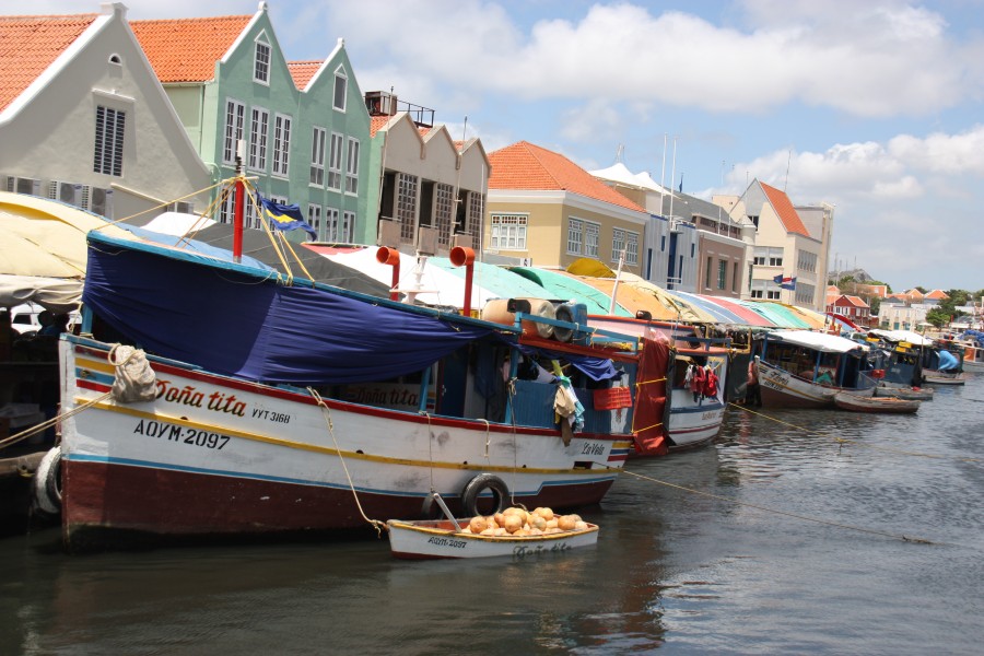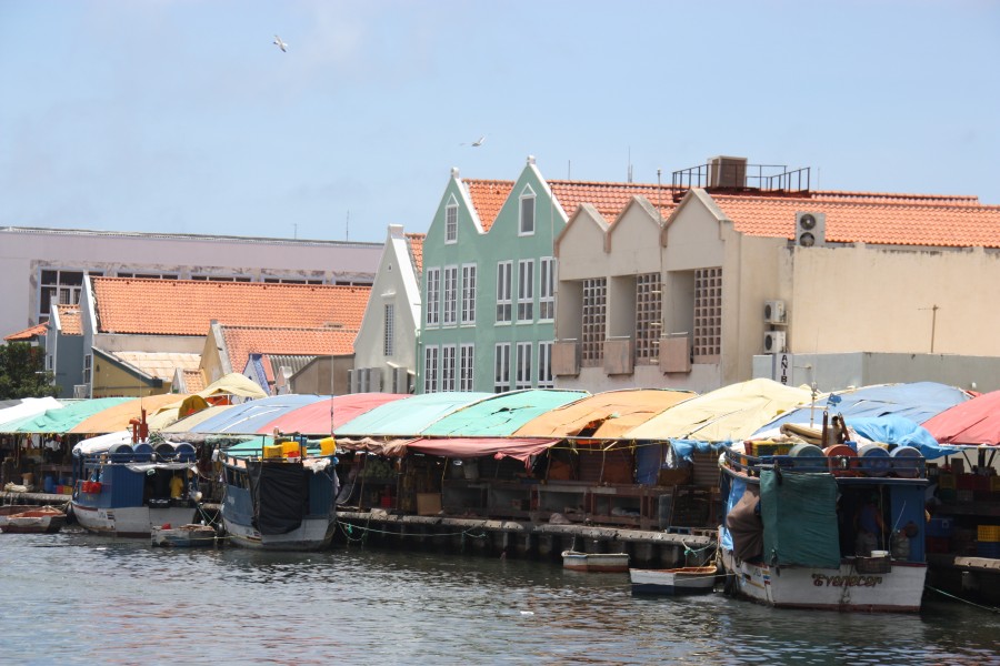 Nur um die Ecke von der Königin-Emma-Brücke im Zentrum von Willemstad auf der Punda-Seite ist der Schwimmende Markt. Am frühen Morgen kommen aus Venezuela zahlreiche Fischerboote mit frischen Waren. Aus den Booten heraus verkaufen die Händler des Schwimmenden Marktes ihre Waren. Ein Stand vor dem Boot dient dabei der Auslage und Präsentation. Zu kaufen gibt es auf dem Schwimmenden Markt vor allem frisches Obst und Gemüse. Exotische Früchte wie z.B. Ananas, Mango, Bananen, Papayas und viele weitere Sorten.