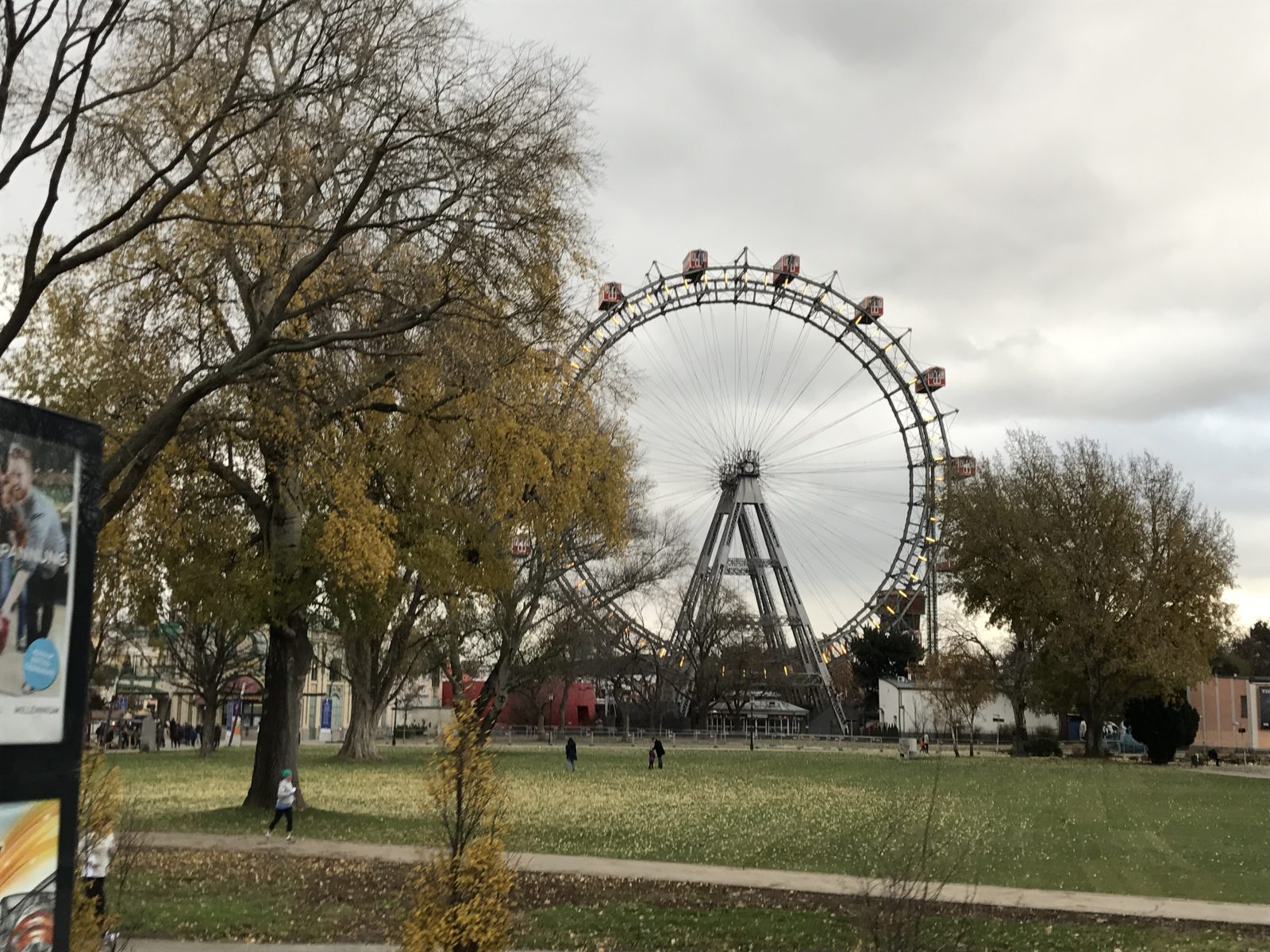 Gebäude historischer Architektur in Wien Historische Gebäude in Wien Blick aus einem Hop on hop off Bus Donautrum Wien, 252 m DC Tower 1, höchstes Gebäude Österreichs Fiaker in Wien Hop on Hop off Bus in Wien Hofburg Wien am Abend Achterbahn vor Wiener Riesenrad