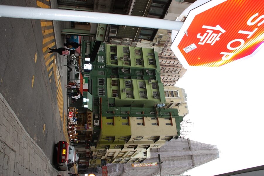 Eingang zum Western Market auf Hong Kong Island Hochhäuser auf Hong Kong Island öffentlicher Straßenverkehr auf Hong Kong Island Western Market auf Hong Kong Island Straßenschluchten auf Hong Kong Island Hollywood Road auf Hong Kong Island Eindrücke von Hong Kong Island Wohnhochhäuser auf Hong Kong Island zweistöckige Straßenbahn auf Hong Kong Island