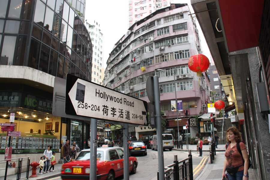 Nördlich des Western Market befindet sich die Hollywood Road. Die zunächst unscheinbar wirkende Straße bietet auf den zweiten Blick jede Menge interessanter Läden. Hier treffen sich Nachtschwärmer, Trödler, Sammler und Stars. In der Hollywood Road hat schon so mancher Star ausgefallene Artikel erworben. Und das angrenzende Szeneviertel lockt bereits am frühen Nachmittag schon Nachtschwärmer an. So ist die Hollywood Road ein ganz besonderer Teil Hong Kongs, den es zu Fuß zu entdecken gilt.