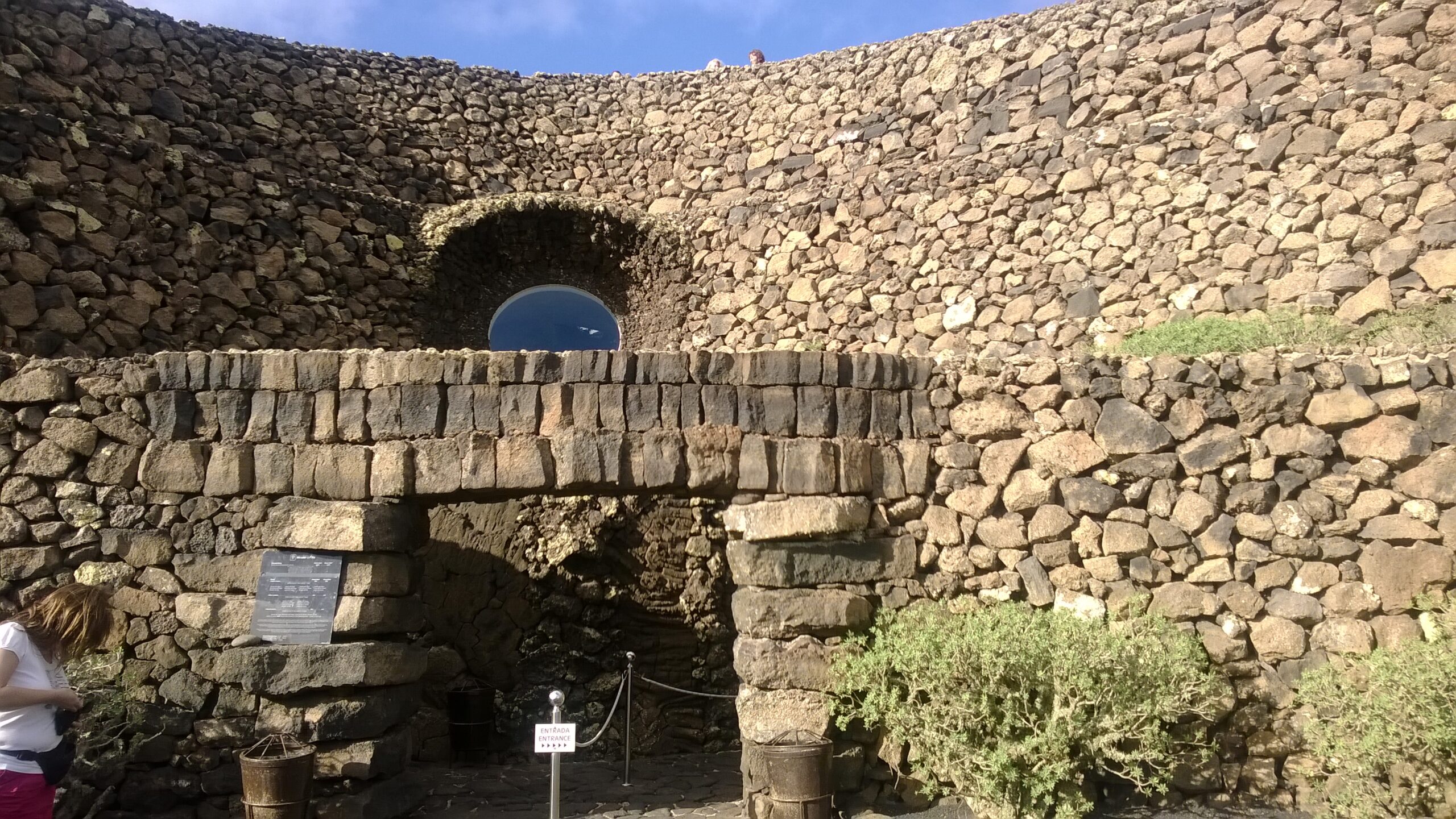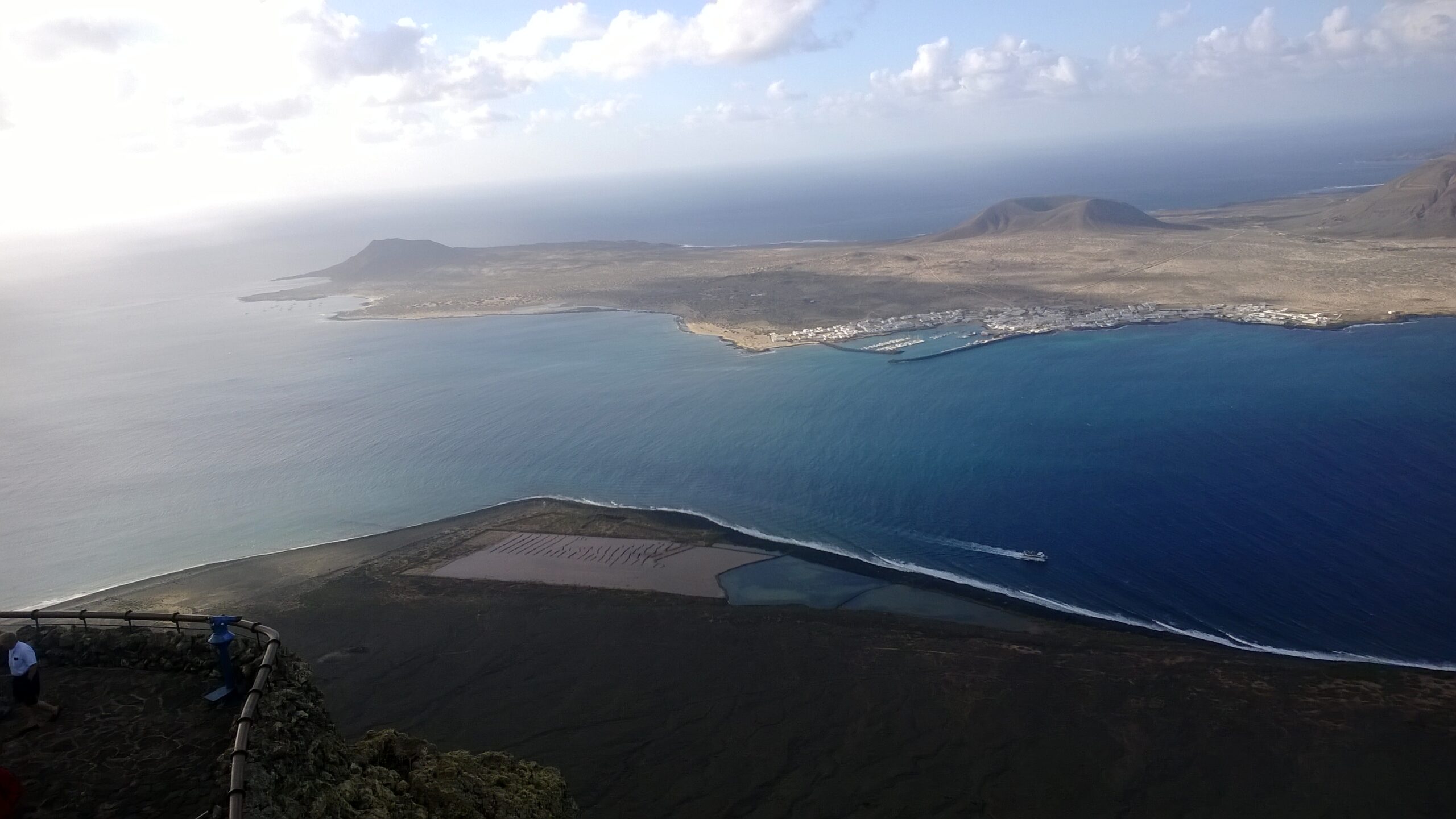 Ein weitere Gang führt zur rund angelegten Treppe um auf die Aussichtsplattform zu gelangen. Von hier bietet das Mirador del Rio mit dem Blick über die Meerenge Rio die ganze Pracht des Kunstwerkes. Bei klarer Sicht kann man hier viele Kilometer weit den Blick auf die Meerenge Rio sowie die Nachbarinseln mit La Garciosa genießen. Am Fuße des Felses befindet sich auf Lanzarote darüber hinaus eine Saline, welche die älteste der Kanarischen Inseln ist.