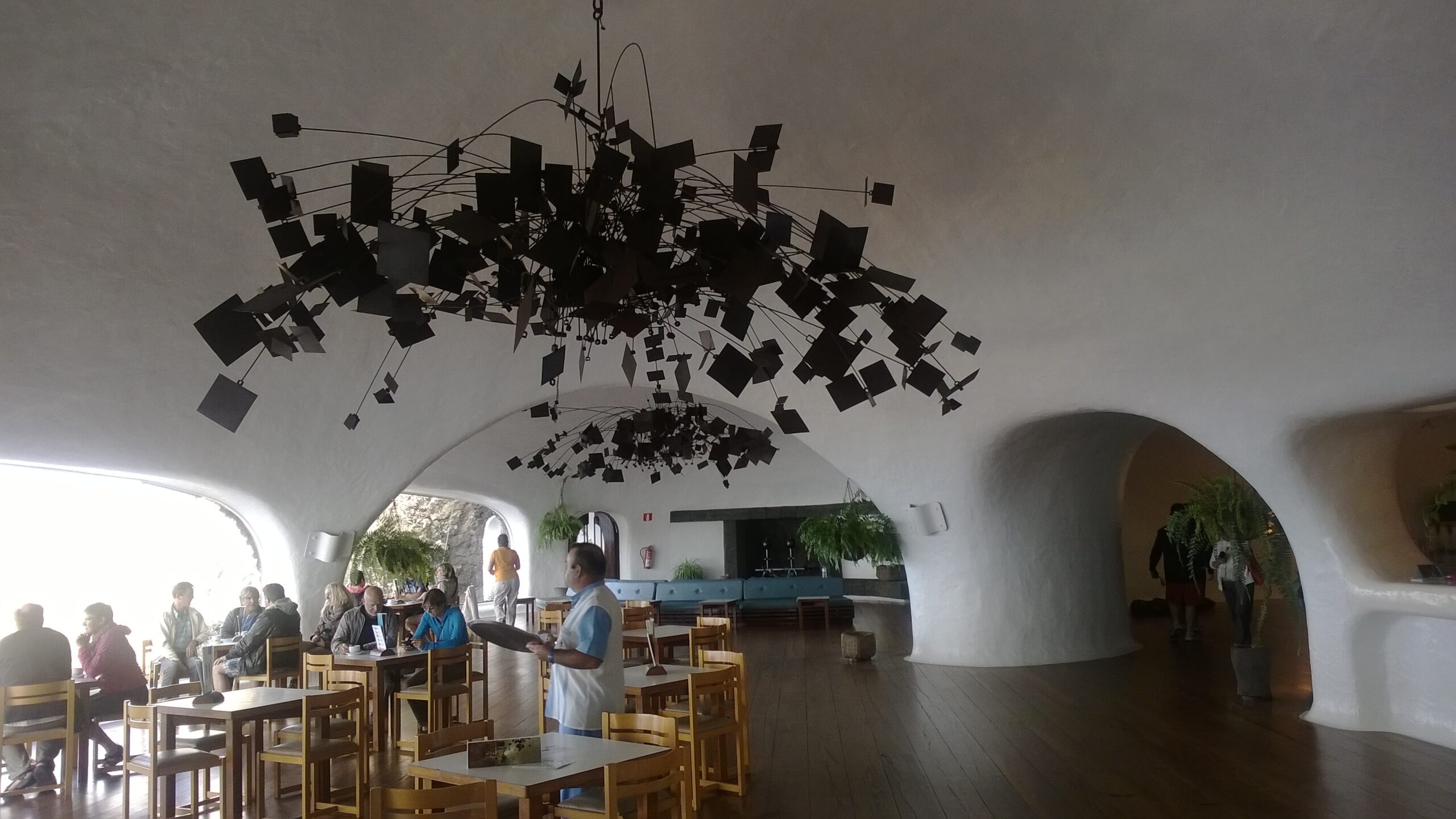 Aussicht vom Mirador del Rio Kunst im Mirador del Rio Gang im Mirador del Rio Mirador del Rio Parkplatz vor dem Mirador del Rio Mirador del Rio von außen Aussichtsplattform des Mirador del Rio Blick auf die Meerenge Rio Blick auf La Garciosa Restaurant mit Panoramafenster Tolle Aussicht vom Mirador del Rio Tolle Aussicht vom Mirador del Rio
