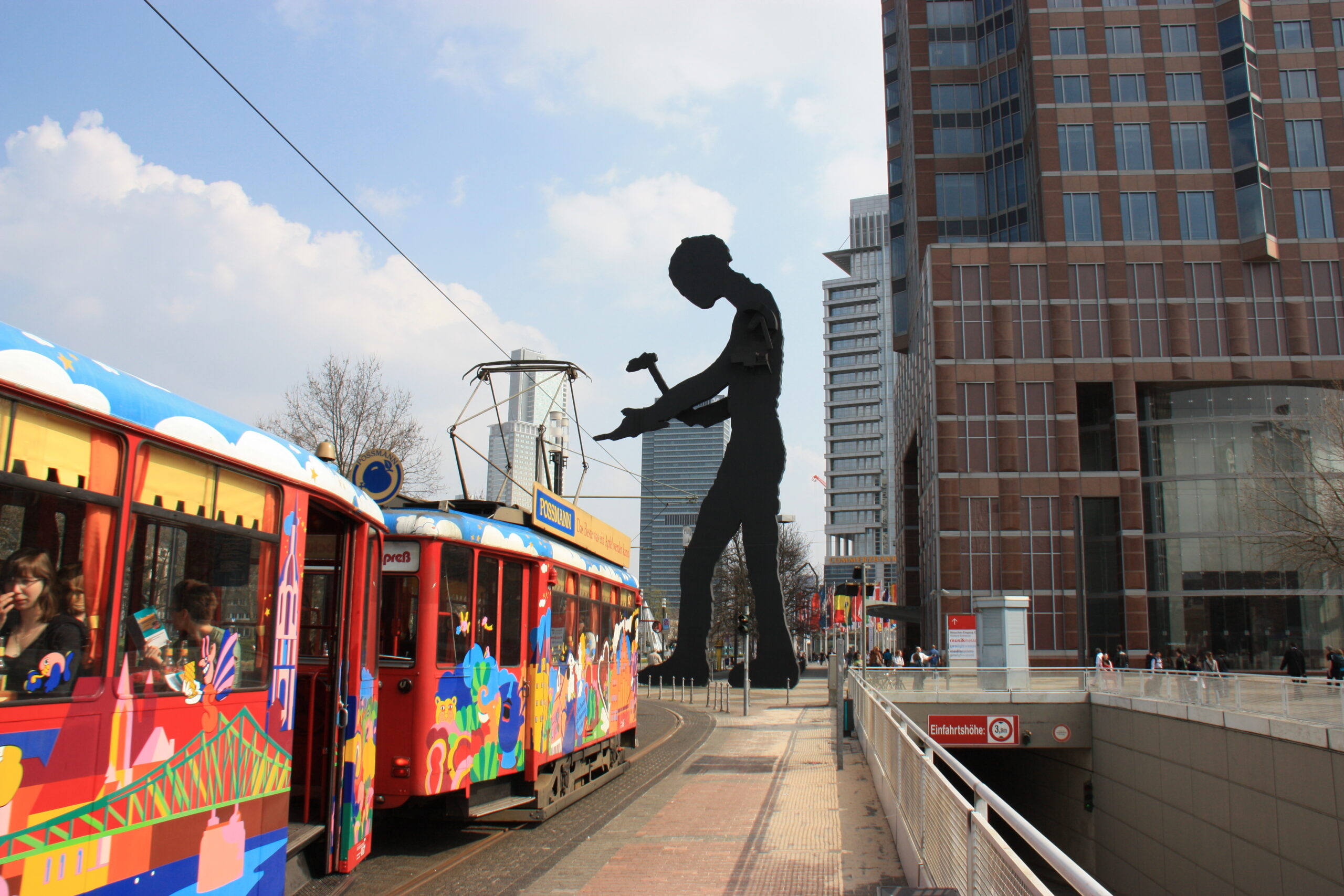 Ebbelwei-Express am Messeturm Ebbelwei im Ebbelwoi-Express Bunte Züge des EbbelwEi-Express Historische Straßenbahn EbbelwEi-Express
